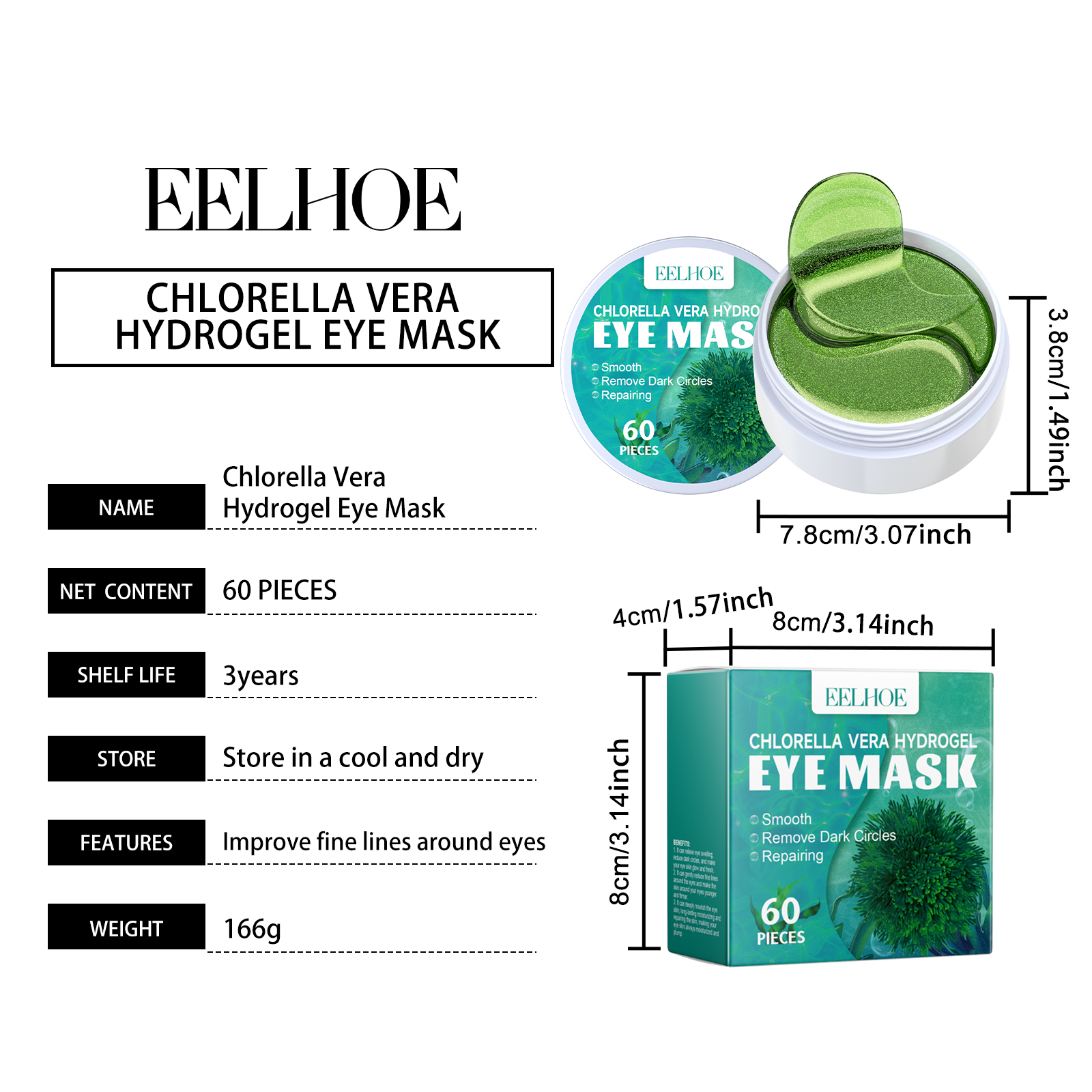 Home > EELHOE Chlorella Vera Hydrogel Eye Mask, Moisturizing Desalination Eye Grain Compact Fine Grain Soft Skin Hydrating Eye Mask